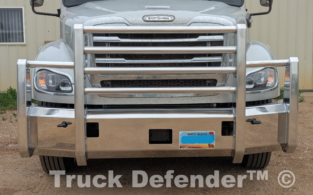 Freightliner M2 Standard Polished Bumper 2'' Pipes, Black Oak Pod Holes (2)